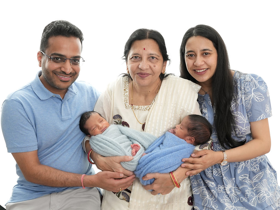 As a Newborn Photographer in Colchester, I recently had the joy of photographing twin baby boys, and what made the session even more meaningful was having their lovely family visiting from India join in the photos too.